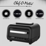 The Chef O Matic 8 in 1 Supreme SM is the ultimate multifunction appliance designed to transform the way you cook. Featuring a modern design, digital touch control with LED display, powerful 1500W performance, and an extra-large 7L capacity, this smart grill combines 8 cooking functions in one convenient appliance: air crisp, roast, bake, broil, dehydrate, pizza, grill, and a manual mode that gives you full control over your recipes.