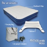 Restform Max also uses 153 × 203 cm standard sheets, is easy to wipe clean, and comes complete with an air pump, multiple nozzles, a storage bag, and a 2-year warranty, making it an ideal solution for guests, travel, camping, and everyday home use.