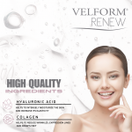 Hydration and radiance: Velform Renew is formulated to intensely moisturise and brighten the skin, giving you a radiant complexion. Its soluble, fast-absorbing formula penetrates into the deeper layers of the skin, leaving it soft and visibly younger looking.